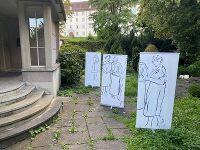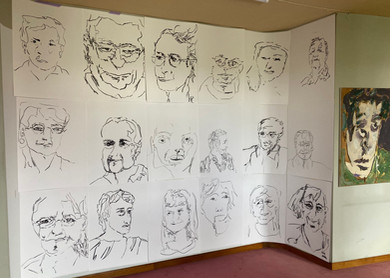 Eine Wand voller grossformatiger, skizzenhafter Porträts bildet eine Art „Ahnengalerie der Gegenwart“. Alle dargestellten Gesichter gehören Menschen, die heute an diesem Ort leben und sich eine halbe Stunde Zeit nahmen, um porträtiert zu werden. In schnellen, unmittelbaren Zeichnungen entstanden so individuelle Bilder, die zugleich Gemeinschaft sichtbar machen.
